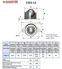 Ball Transfer Unit, Spring Loaded, Large Bottom Flange -